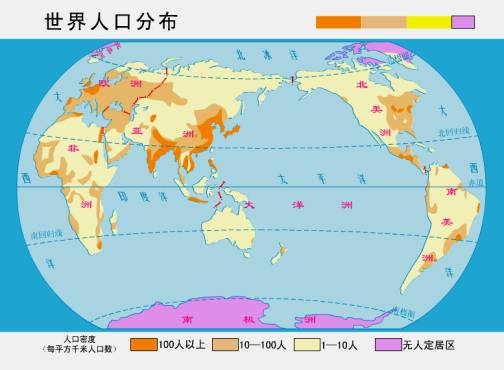 (1)人口密度:指每平方千米内居住的人口数。(说明人口分布的疏密程度)