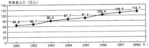 (1)1991年至1998年,该市人口增长率最高的年份是( )