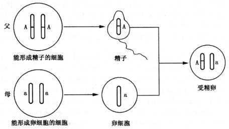 (2)人类的遗传病目前已发现6000多种,其中有些是一对等位基因控制的。有的是由显性致病基因控制的显性性状的遗传病,例如人类的多指(如六指)是由显性致病基因控制的,致病基因用A表示,如果双亲的一方为多指(AA或Aa),他们的子女就会全部患多指病或一半患多指另一半正常。由此可知:由显性基因控制的遗传病的发病率是很高的。有的遗传病是由隐性致病基因控制的,例如白化病是由隐性致病基因控制的一种遗传病。如果双亲均表现正常,但都是杂合体(Aa),即各具有一个白化病基因a,那么他们的子女有三种基因型(AA、Aa和aa),比例为1∶2∶1,AA和Aa的个体表现正常,占3/4,只有aa的个体表现出白化病症,占后代总个体的1/4。根据基因的分离规律的知识,应禁止近亲结婚,防止隐性遗传病的发生。