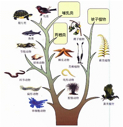 科学家通过对化石的研究发现,在地层中最初出现的是水生无脊椎动物,以后依次出现鱼类,开始登陆的两栖类,陆生的爬行类和由爬行类分化出的鸟类以及哺乳类,最后才出现人类。