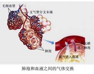从表中可以看出,由肺内呼出的气体,其种类与吸入的气体相同,但各种气体的容积百分比已经改变,主要是O2减少而CO2增加。存在于肺泡内的气体,其各种气体的容积百分比与呼出的气体不同,O2的百分比更少而CO2更多。在吸入气中,O2约占21%,而肺泡中的氧仅占14.3%,两者比较,表明已有6.7%的O2扩散人血液中,被组织细胞所利用。而在吸入的新鲜空气中,CO2的容积仅占气体总容积的万分之四,几乎可以忽略不计,但在肺泡气中却占56%,这表明这些CO2完全是由组织细胞所产生的。N2在呼吸过程中原无增减,但表中三种情况下的N2的百分比不同,这是由于受其他两种气体的百分比的影响,只是相对地起了变化,其绝对值并无变动。至于呼出气与肺泡气的不同,是由于每次呼出气中,开始的一部分是上次吸入的新鲜空气存留在呼吸道中的,因此这种不同,实际上是呼吸道内存留的气体和肺泡气混合的结果。