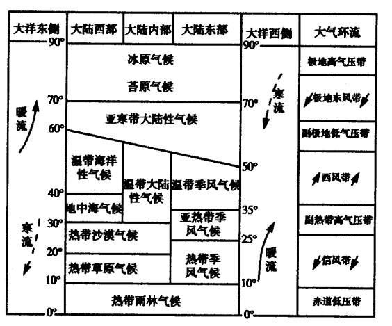 3、大气环流:调整全球水热分布;影响各地气候类型。