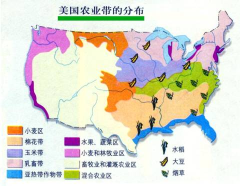 8.美国的农业:世界上的农业大国,农业机械化程度高,地区生产专门化