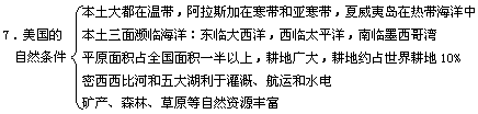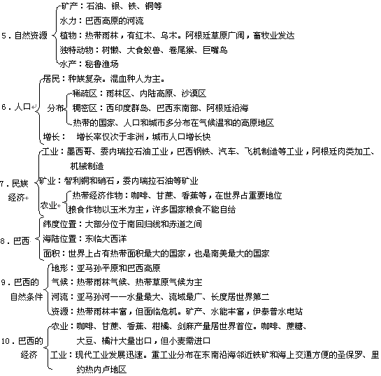 本周主要学习两个区域:北美地区和拉丁美洲地区。重点要掌握的是:北美的地形、气候特征,及北美气候的成因;美国的领土组成、自然条件、经济特征;拉丁美洲的位置和范围,地形、气候特征;拉丁美洲的自然资源和巴西的经济特征。