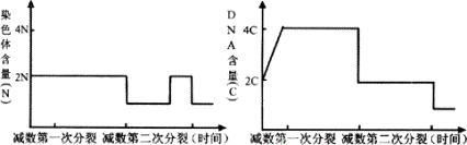 减数第一次分裂中发生了同源染色体的联会、分离,到减数第一次分裂的末期结束,子细胞中染色体数目减半,由2N→N,DNA数目也随之减半,由4C变为2C。