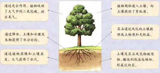 自然地理环境是由大气、水、岩石、生物、土壤等地理要素组成的。这些要素并非简单地汇集在一起,或偶然地在空间上结合起来,而是通过水循环、生物循环和岩石圈物质循环等过程,进行着物质迁移和能量交换,形成一个相互制约、相互联系的整体。
