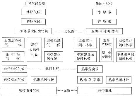 4、陆地自然带与世界气候类型分布的对应关系