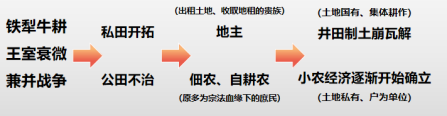 经济上,铁犁牛耕推广,井田制瓦解,土地私有制产生,小农经济发展。