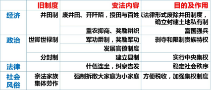 4.罗列商鞅变法的基本史实(背景、具体措施、历史作用),简单了解其他国家代表性变法,对这一时期“大变革”的时代特征有所把握。