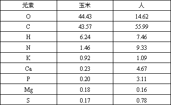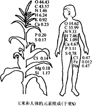 组成生物体的化学元素,在生物内和在无机自然界中的含量相差很大,如C、H、N 3种元素在组成人体的干物质重量中,质量分数约占73%,而这3种元素在组成岩石圈的化学成分中,质量分数还不到1%