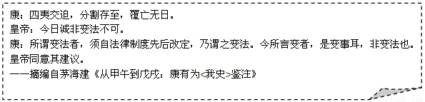 材料二 1898年6月16日光绪皇帝与康有为对话节选(右边材料)