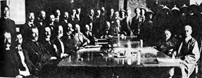 9、下图是某一条约签订的情景,该条约是中国近代史上赔款数目最庞大、主权丧失最严重、精神屈辱最深沉的不平等条约。它的签订,标志着中国完全沦为半殖民地半封建社会。这个条约是()