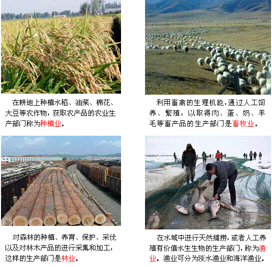 根据农业对土地资源利用方式的差异,农业分为以下以下四种农业部门: