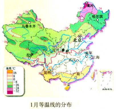 是我国季风气候区的北部地区,1月0℃等温线和800毫米等降水量线以北 |