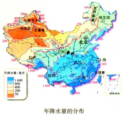 是我国季风气候区的南部地区,1月0℃等温线和800毫米等降水量线以南 |