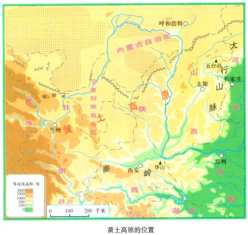 1)东起太行山、西至乌鞘岭、南至秦岭、北抵长城,跨越了晋、陕、甘、宁四省区。