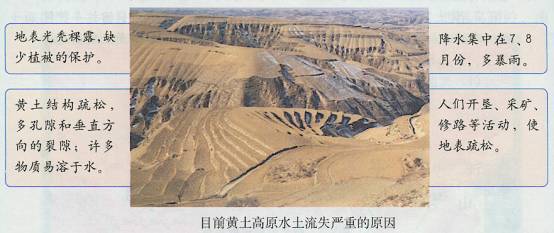 容易发生水土流失的地区一般降水量较大、降水季节差异大,地形一般为山区,地表坡度大。黄土高原是世界上水土流失最为严重的地区之一。其水土流失产生的原因有: