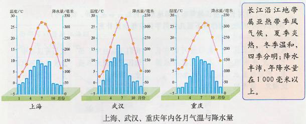 ②沿江地带地势低平、土壤肥沃、淡水资源丰富,热量较为充裕,水热同期,为农业发展提供了良好的条件,是国我重要的农业区,而且工业基础雄厚。