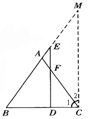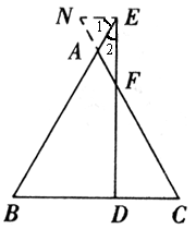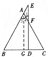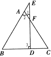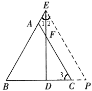 过E作EP//AC交BC的延长线于P,则∠AFE=∠2,∠3=∠P.