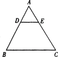 6、(2003年,北京市)如图,在等边三角形ABC中,点D、E分别在AB、AC上,且DE∥BC.如果BC=8cm,AD︰AB=1︰4,那么△ADE的周长等于___________cm.