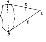 8、(2003年,长沙市)如图,A、B两点位于一个池塘的两端,小明想用绳子测量A、B间的距离,但绳子不够,一位同学帮他想了一个主意:先在地上取一个可以直接达到A、B的点C,找到AC、BC的中点D、E,并且测出DE的长为15m,则A、B两点间的距离为___________m.
