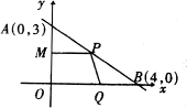 12、如图,在Rt△AOB中,∠AOB=90°,OA=3cm,OB=4cm,以O为坐标原点建立如图所示的直角坐标系,设P、Q分别为AB边、OB边上的动点,它们同时分别从A、O向B点匀速移动,移动的速度都是1cm/s.设P、Q移动时间为t(s)(0≤t≤4),过P作PM⊥OA于M,证明: ,并求出P点的坐标(用t表示)____________.