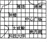 14、小明到某旅游景点去旅游,在旅游点入口处看见了一张旅游区的平面图,如图所示,(图中每个小正方形的边长为1个单位长度)。请以某景点为坐标原点,画出直角坐标系,并用坐标表示其余各景点的位置?然后再换另外一个景点为坐标原点,再画出直角坐标系,比较一下相同景点的坐标是否相同。