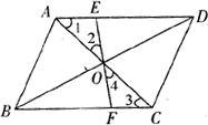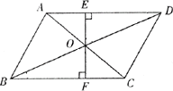 例 1、如图,已知□ABCD的对角线相交于点O,OE⊥AD于E,OF⊥BC于F,求证:OE=OF。