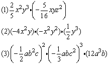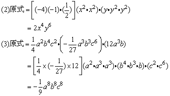 (2)是三个单项式相乘,仍然按照系数、相同字母、不同的字母三部分分别相乘.