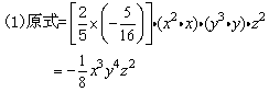 (1)直接运用单项式乘法法则,把系数、相同分母分别相乘,只在一个单项式里含有的字母,则连同它的指数作为积的一个因式.