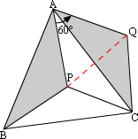 把△APB绕点A逆时针旋转60°到达△AQC的位置,点P的对应点为Q,点B的对应点为C,PB=QC,AP=AQ,且∠PAQ=60°,连结PQ,∴△APQ是等边三角形,则AP=PQ=AQ.