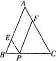 例 3、如图,△ABC中,AB=AC,点P是BC上任一点,PE∥AC,PF∥AB,分别交AB、AC于E、F,试问线段PE、PF、AB之间有什么关系,试证明你的结论.
