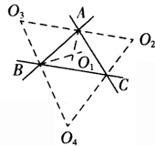 (2)分别作出△ABC两外角平分线,其交点分别为O2,O3,O4;