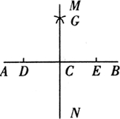 作法:(1)以C为圆心,以任意长为半径画弧交AB于D、E两点.