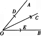 (2)分别以D、E为圆心,以大于 DE长为半径画弧,两弧交于∠AOB内一点C.