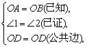 证明:因为OD平分∠AOB,所以∠1=∠2(角平分线定义).