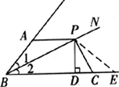例1、(常州)如图,已知∠1=∠2,P为BN上一点,且PD⊥BC于D,AB+BC=2BD,求证:∠BAP+∠BCP=180°.