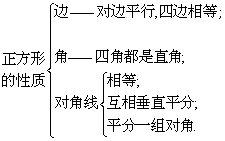 从正方形的定义可知,正方形既是一种特殊的矩形(有一组邻边相等的矩形),又是一种特殊的菱形(有一个角是直角的菱形),因此它具有矩形和菱形的所有性质.
