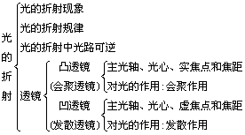 4、透镜分为凸透镜和凹透镜两类,凸透镜对光有会聚作用,凹透镜对光有发散作用。