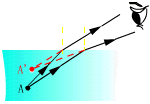 光从一种介质时入另一种介质时,光的传播方向一般会发生变化,这就致使人从一种介质看另一种介质中的物体时,看到的物体位置与实际物体位置有所区别。