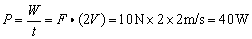 例3、如图所示,人拉绳子的力F=10N,使货物以V=2m/s的速度匀速上升,求拉力做功的功率。