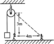 例6、(扬州市)大伟同学用一个距离手3m高的定滑轮拉住重100N的物体,从滑轮正下方沿水平方向移动4m,如图所示,若不计绳重和摩擦,他至少做了多少功( )