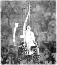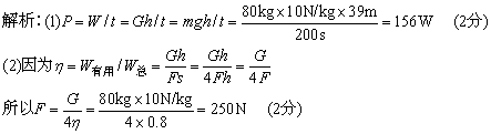 例3、(南昌)如图所示,是2008北京残奥会开幕式最后一棒火炬手侯斌,靠自己双手的力量,攀爬到火炬白底部并最终点燃圣火的照片,该点火仪式充分体现了残疾人自强自立、拼搏向上的勇气和精神.已知他和轮椅总质量为80kg,攀爬高度39m,历时约3min 20s.