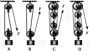 (2)小明同学看到火炬手攀爬很费劲,想到物理课上学过利用滑轮组可以省力.小明同学如果站在地面上,用如图所示哪个滑轮组拉起火炬手侯斌最合适,理由是什么?如果该滑轮组机械效率为80%,求小明同学的拉力至少要多大?(g取10 N/kg)