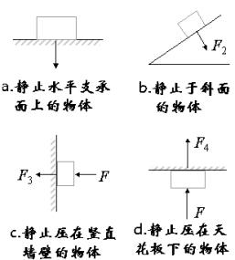③压力与重力是两种不同性质的力,有些情况下,压力是由于物体重力而产生,还可能两者大小相等,而有些情况下,压力与重力无关.