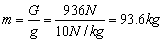 野人的重力 G=F=PS=2.6×104Pa×360cm2