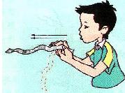 实验①:用双手拿着一纸条靠近下嘴唇,用力向外吹气,纸条会向上升。