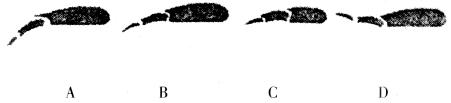 例1、飞机机翼初看好像是一个整体,实际上是由几部分组成的,如图.它的襟翼可以绕轴向后下方、后上方偏转.飞行员在飞机上升、平稳飞行、下降和着陆减速等过程中,是通过操纵杆改变襟翼的弯度来改变飞机的升力、阻力的.下图是简化的机翼截面图,其中表现飞机上升的是( )