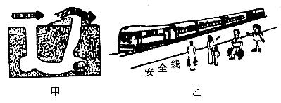 (2)试着运用上文提到的物理知识说明,乘客为什么必须站在安全线以外的位置候车(如图乙所示)。