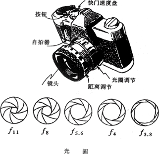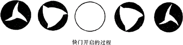 快门是控制光线进入镜头时间长短的机械装置,是一种合页式的快门。下页图中画出了快门从开启到合拢的过程。快门和光圈大小与快门速度,照出栩栩如生的照片,初学者不善于选择光圈和快门,照出的照片或者一片黑,或者一片白,十分扫兴。